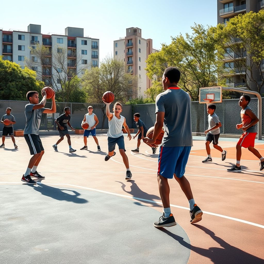 运球:保持低姿态,练习左右手流畅切换,增强控球能力。可以从原地运球开始,再到前进或转身运球。传球:胸前传球、击地传球,之后学会快速准确地传递,培养团队合作。投篮:站稳稳定,手腕发力,找到适合自己的投篮姿势,从简单的中距离投篮开始,逐步挑战远距离或三分。